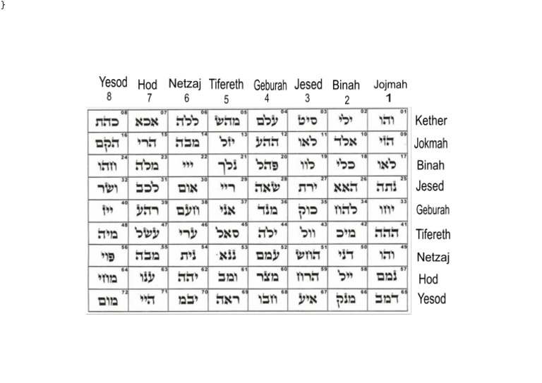 Reseñas Tabla de Los 72 Nombres y Relacion Sefirotica tendencias
