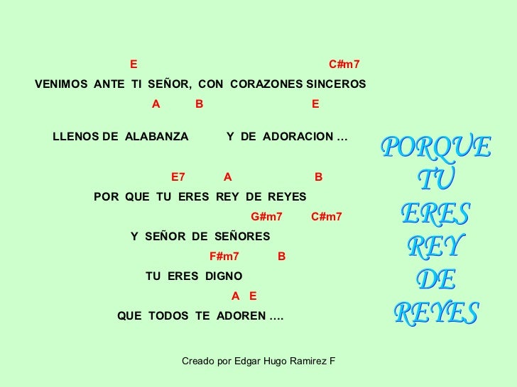 Venimos ante ti señor con corazones sinceros llenos de alabanza y de adoración (bis) coro por qué tú eres rey de reyes y señor de señores solo tú. Letras, acordes y tabs para guitarra, bajo y ukulele. D // venimos ante ti señor bm con corazones sinceros em llenos de alabanza a7 d am7 d7 y de adoración / / g // porque tú eres rey de reyes a7 f#m y señor de señores bm em sólo tu eres digno a7 d am7 d7 de que todos te adoren //. Venimos ante ti, señor con corazones sinceros llenos de alabanza y de adoración porque tú eres rey de reyes señor de señores tú eres digno que todos te adoren porque tú eres rey de reyes señor de señores tú eres digno que todos te adoren añadir a. // venimos ante ti señor, con corazones sinceros. Llenos de alabanza y de adoración // // porque tú eres rey de reyes y señor de señores. Sólo tú eres digno de que todos te adoren // si desea conocer más sobre la música cristiana y cómo identificar himnos cristianos de acuerdo a las escrituras, puede consultar los siguientes artículos. Letra y acordes mejor versión c em //venimos ante ti señor , con corazones sinceros , dm g c llenos de alabanza y de adoracion// c7 f g //porque tu eres rey de reyes , em y señor de señores , am dm solo tu eres digno g c7 de que todos te adoren// + ¡colabora con nosotros! Envíanos tu versión de esta canción tutorial hd