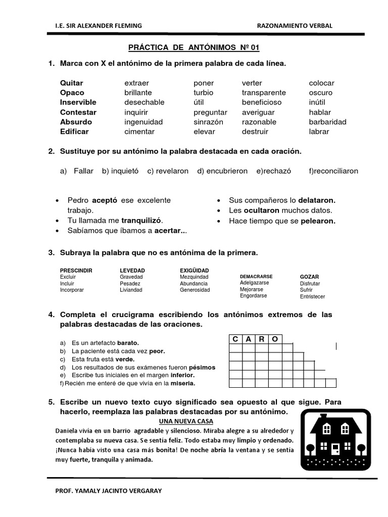 Artículos Los antónimos – Segundo de secundaria [Razonamiento verbal] Último