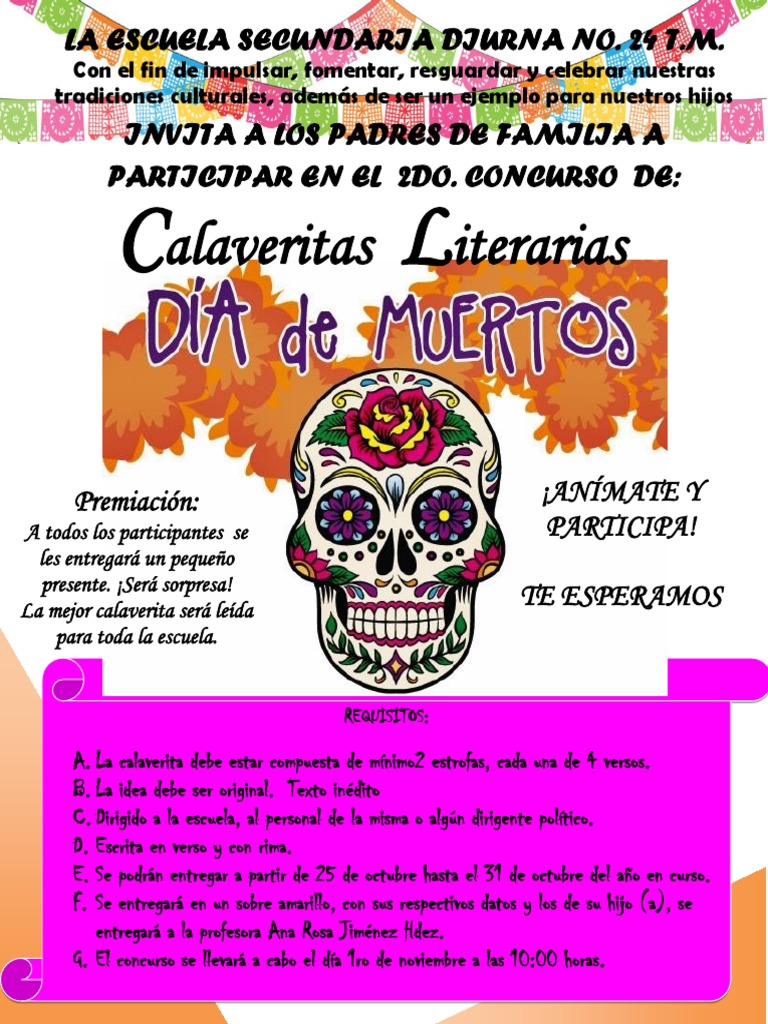 Concurso de calaveritas literarias-Empezamos nuestra celebración de dia Nuevo
