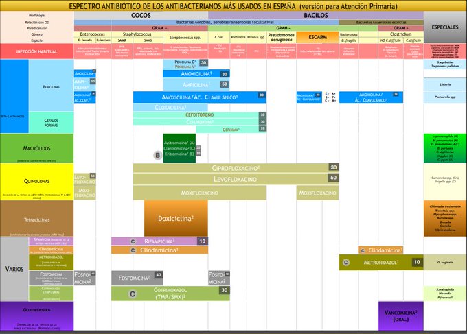 ESPECTRO ANTIBIÓTICO DE LOS ANTIBACTERIANOS MÁS USADOS EN ESPAÑA (versión 2019.1) – La Mochila del Resi