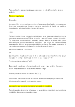 Rae Clínico 3 – líquidos y electrolitos – Rae: Analizar los laboratorios de Juan y con base en esto – Studocu